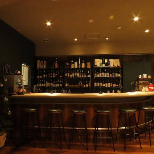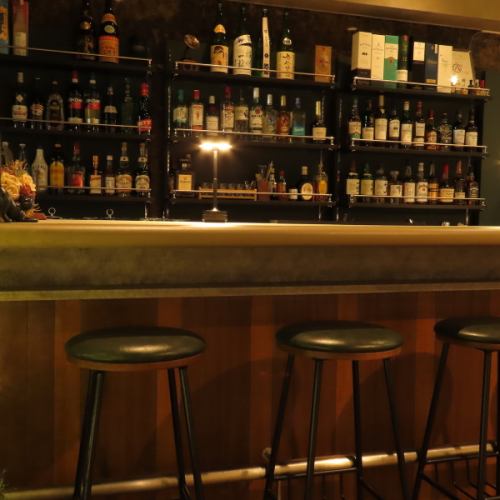 静かな語らいとお酒を嗜むバーカウンター。お一人様でもふらっと気軽に立ち寄れるカジュアルなお店です。